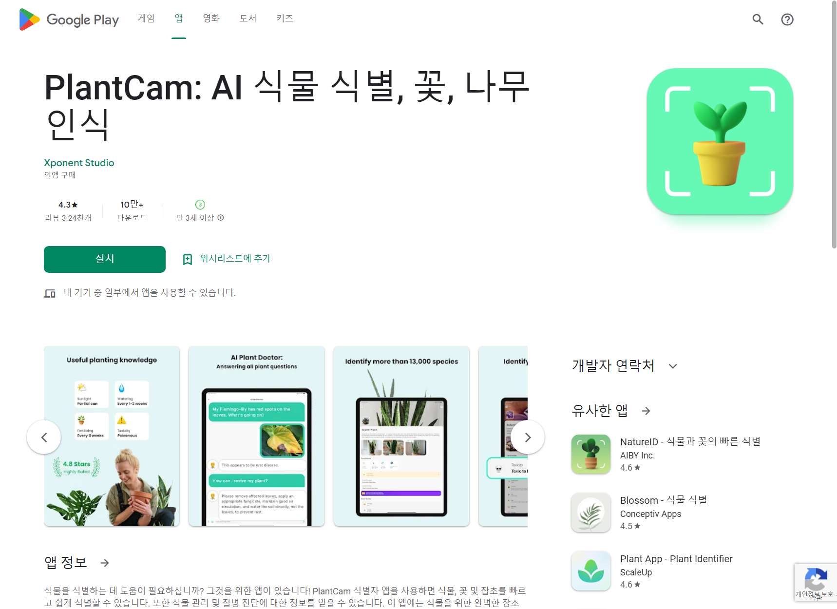 플랜트캠(PlantCam): AI 식물 식별, 꽃, 나무 인식 앱 정보